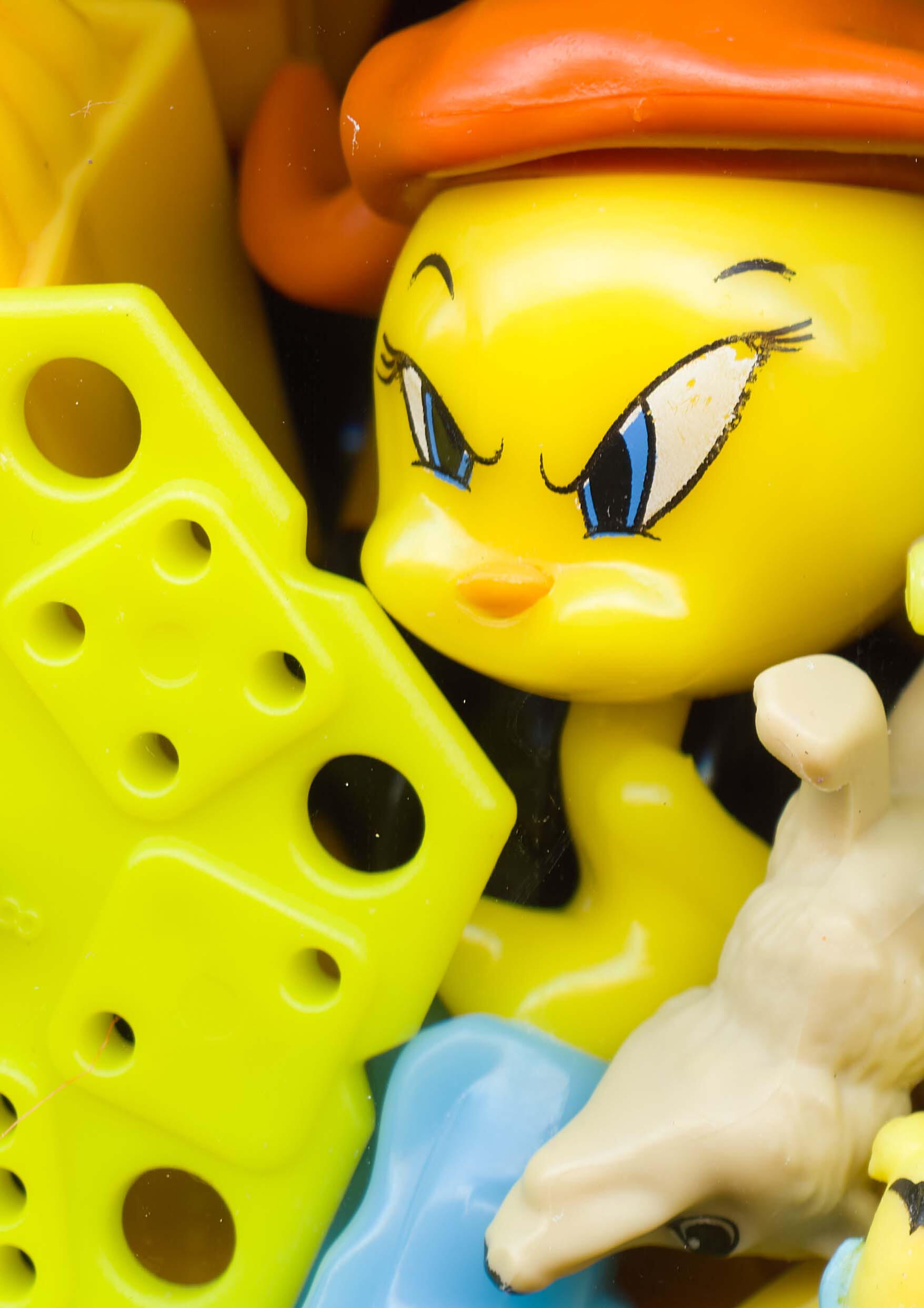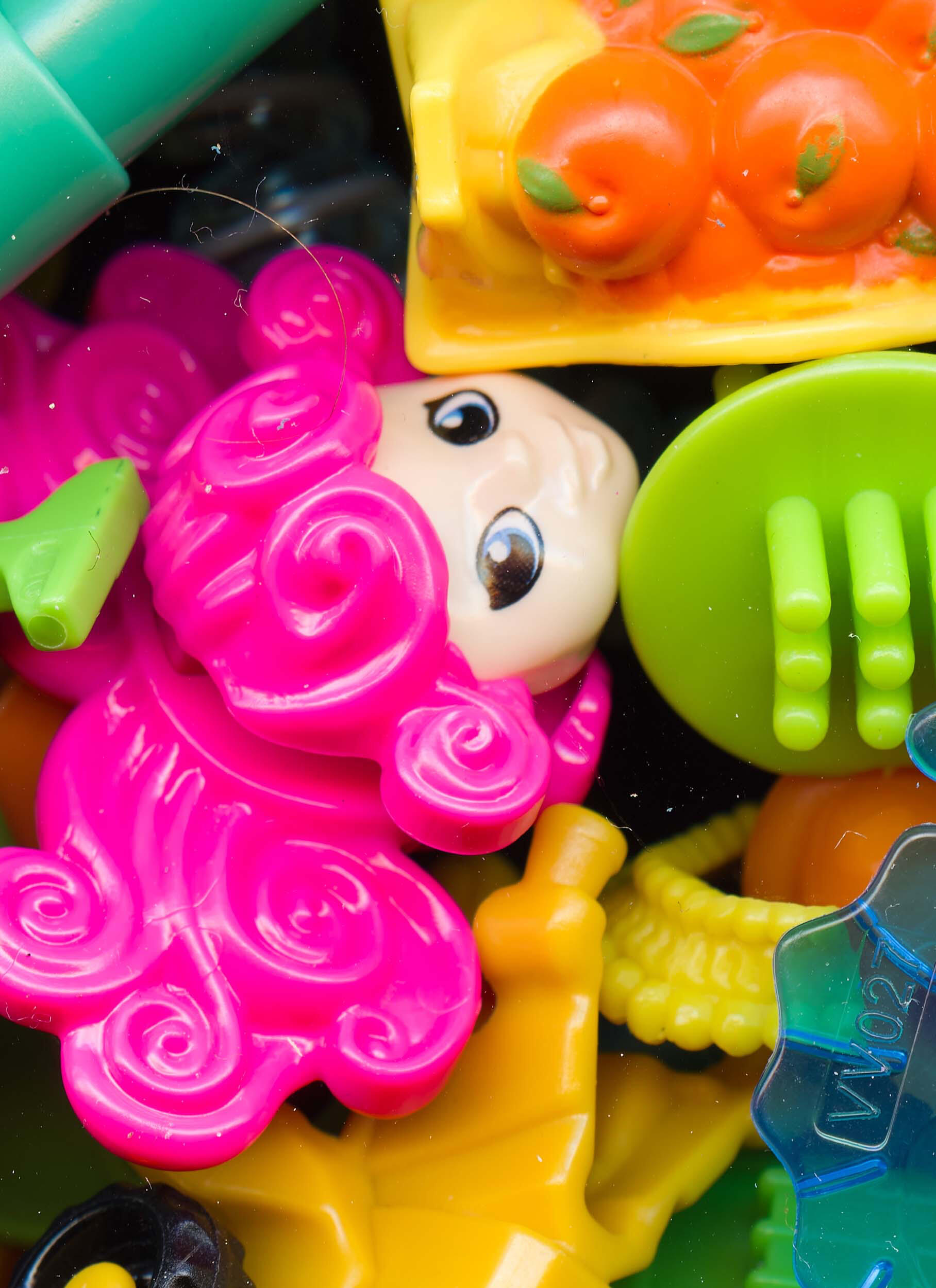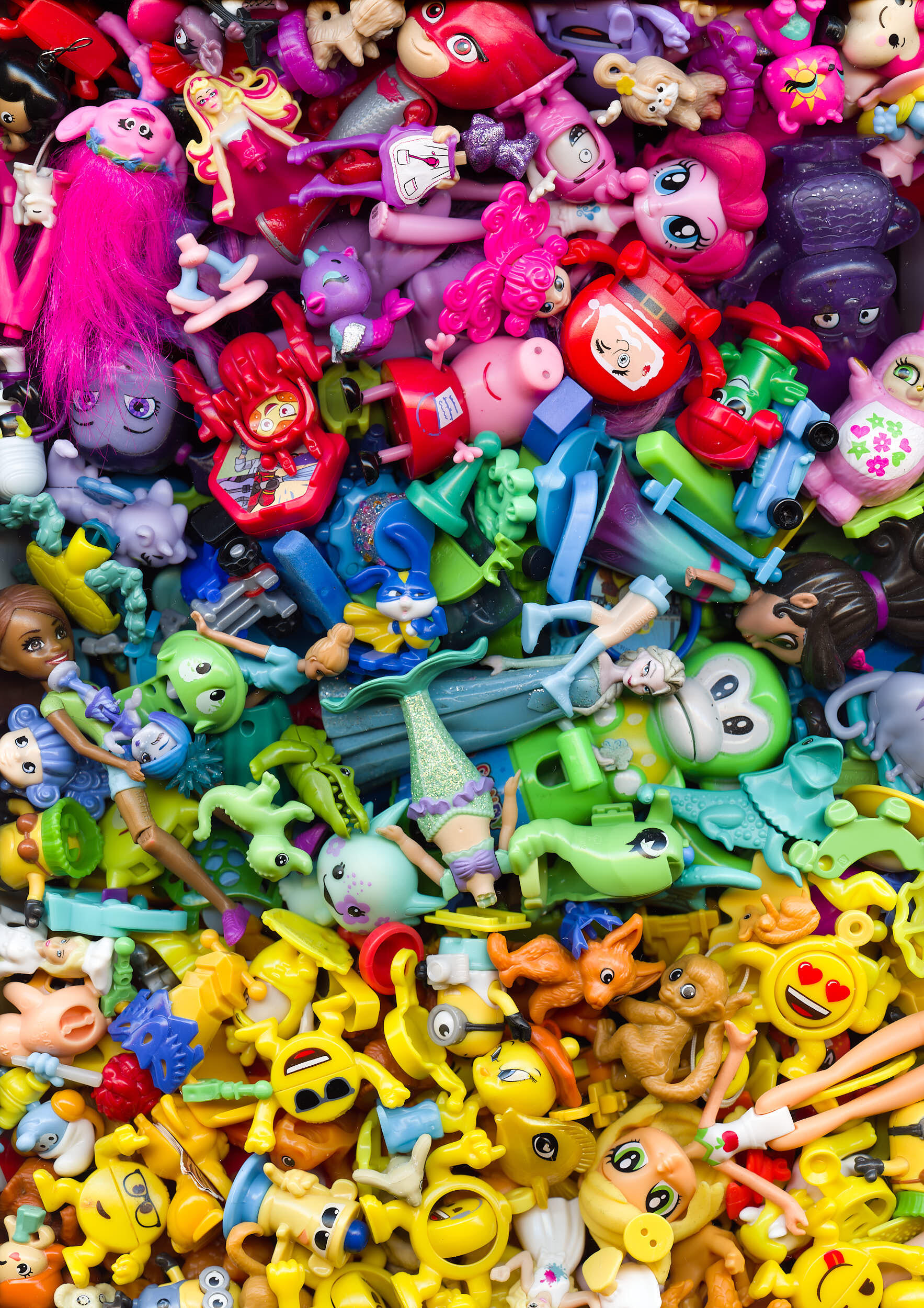 This subseries examines the brightly coloured toys and figurines designed to spark momentary delight and drive impulsive consumption. Mass-produced, marketed through free giveaways, and targeted at children, these plastic objects live far beyond the brief attention they command.By isolating and presenting these toys at an immense scale, the work exposes the profound disconnect between their ephemeral, disposable function and their centuries-long material persistence. Happy Hydrocarbons asks the viewer to reflect on the troubling legacy of these manufactured playthings, which will outlast their intended joy and remain embedded in our environment for generations to come.